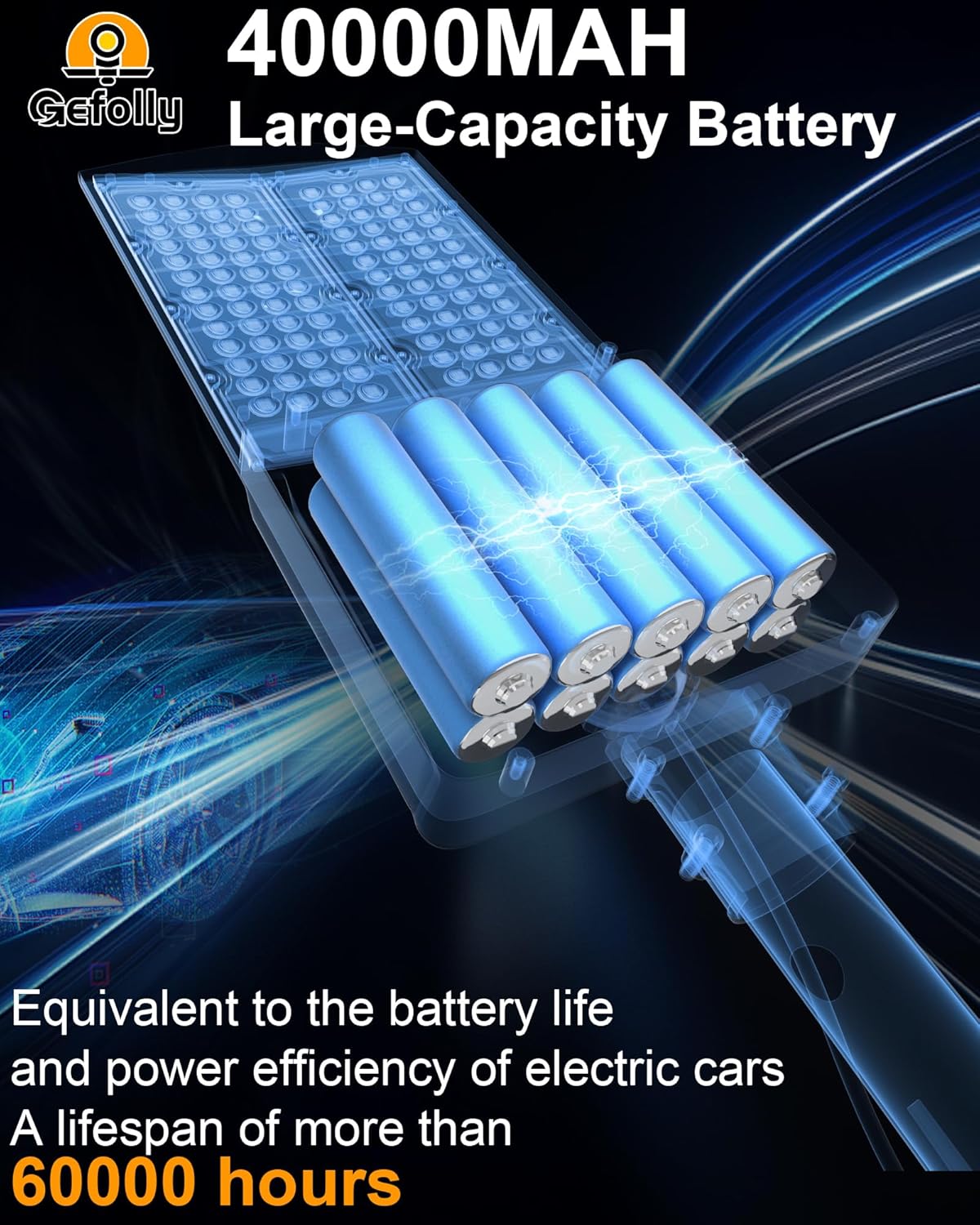 - [Solar Powered & No Electricity Bill] - Gefolly SL-95000W The solar street light is built-in 104pcs 5054 ultra bright LED lamp beads and 40000mAh battery (lifetime up to 60,000 hours). Provides a 6500K, IP67 waterproof rating, and works normally even in bad weather all year round. Solar powered, no electricity bill, auto turns on at dusk and charging during the day, Continuous lighting up to 30 hours (when fully charged). Best for commercial and home lighting. Note: The remote controls that come with the light are available in white and black. The white and black remote controls are shipped randomly.
