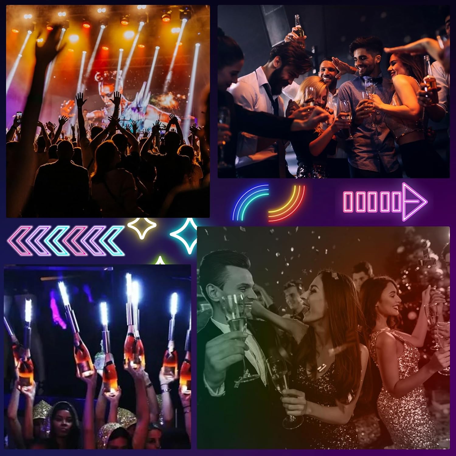 - 【Lightweight and Durable Material】These bottle service sparklers lights are made of premium aluminum alon material, sturdy and lightweight and non-fading, strobe light for parties, not easy to break or deform for long use. The LED bottle service lights can be widely used for various occasions and outdoor activities