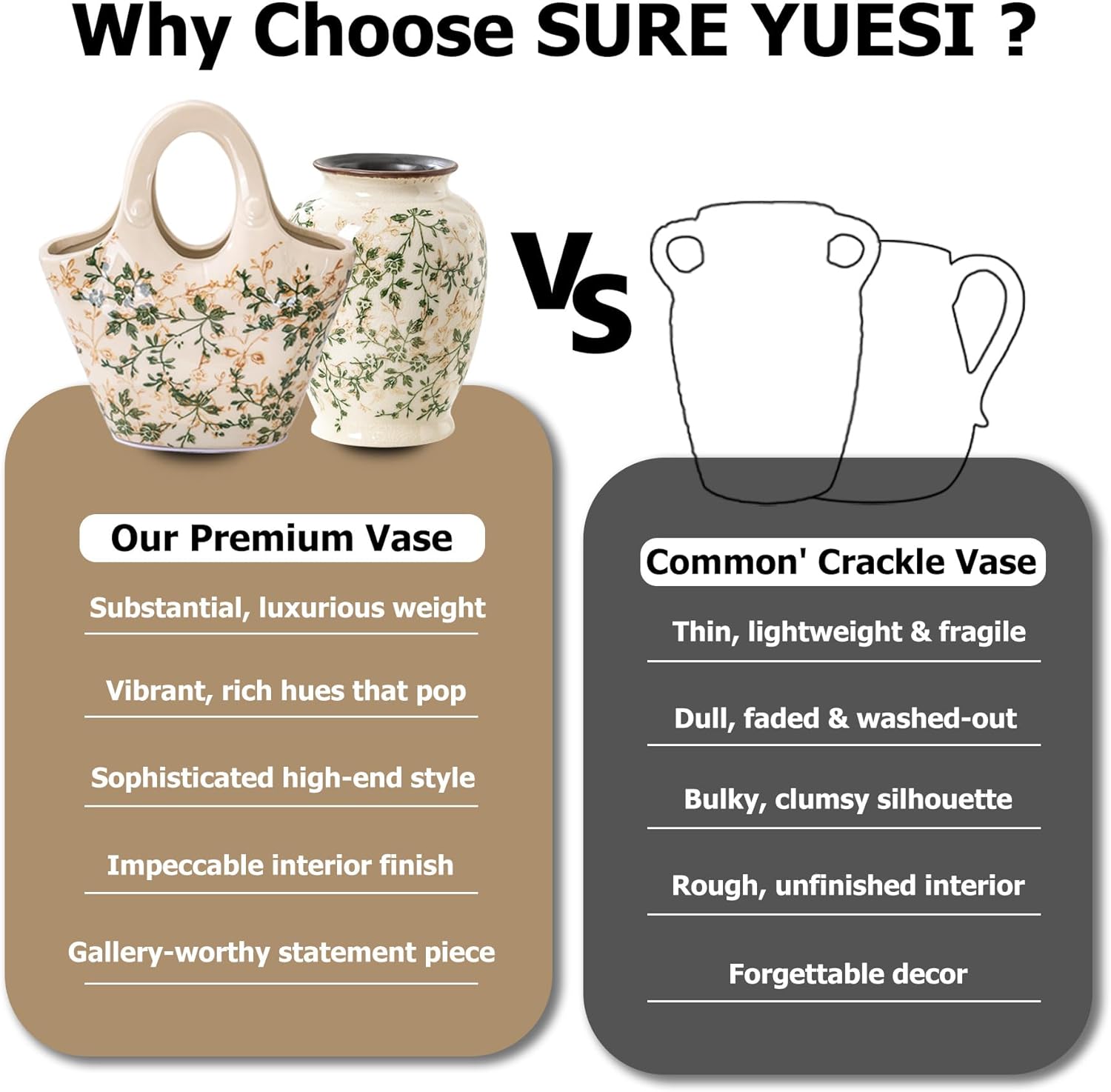 - Elegant Vintage Design: The SURE YUESI vintage vase is a handcrafted green and beige vase with a timeless round silhouette. Its beautiful design adds a touch of chinoiserie decor and vintage home decor charm, making it an eye-catching accent for any room.