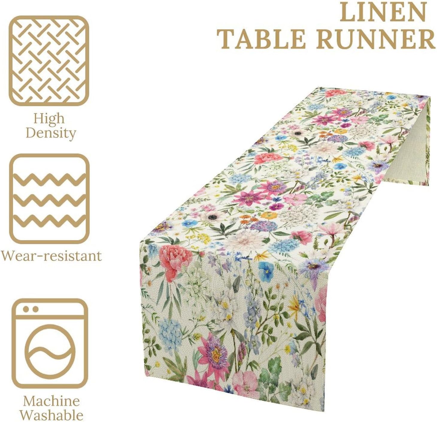 Floral Table Runner Watercolor Peony Rose Flower Kitchen Table Decoration for Indoor and Outdoor Wedding Party 13x70 Inch