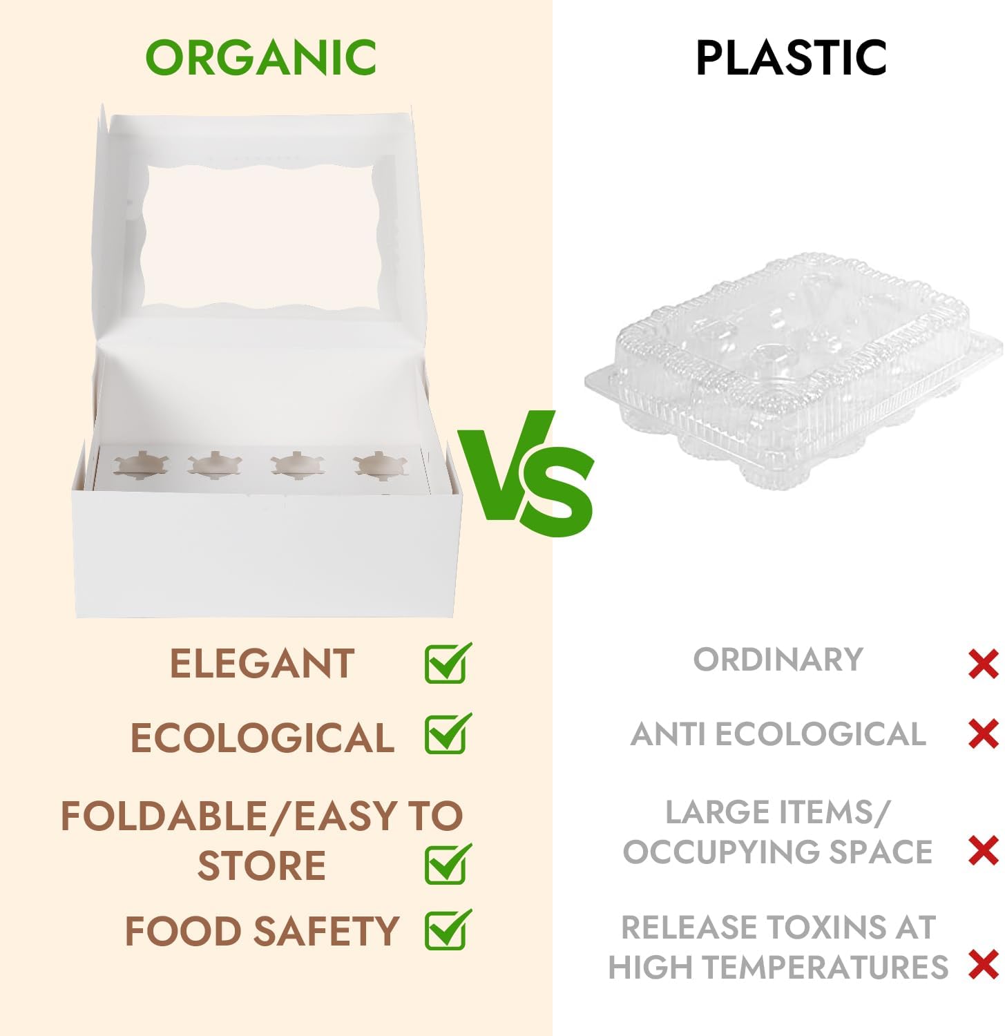- Quality Material:Our Cupcake Carriers are made of Premium Soft PET Plastic and quality cardboard,BPA-free to ensure it is safe for all food.It is thickest, strongest, yet lightest material, will not bend or collapse at the bottom.