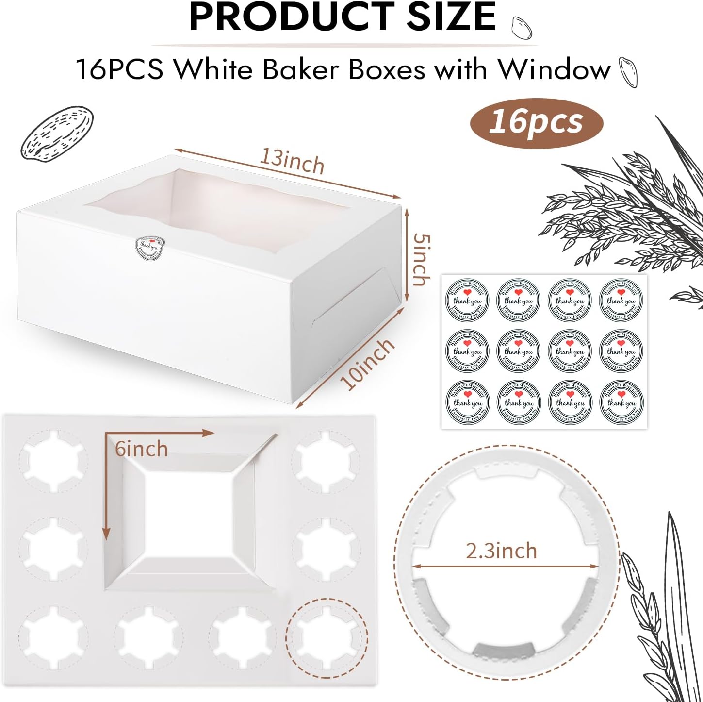 - Package Includes:16 Packs Cake and Cupcake Box Combo with Clear Window.cupcake boxes + inserts+ Stickers.The paper inserts keep the cupcakes stay in place from moving around. The cake box has a wide viewing angle, perfect for showcasing cakes while protecting them. It is a great choice for making cupcakes and pastries.