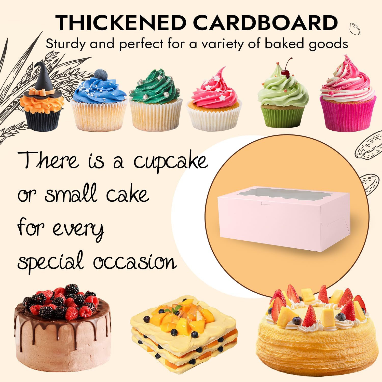- Package Includes:8 Packs Cake and Cupcake Box Combo with Clear Window.cupcake boxes + inserts+ Stickers.The paper inserts keep the cupcakes stay in place from moving around. The cake box has a wide viewing angle, perfect for showcasing cakes while protecting them. It is a great choice for making cupcakes and pastries.