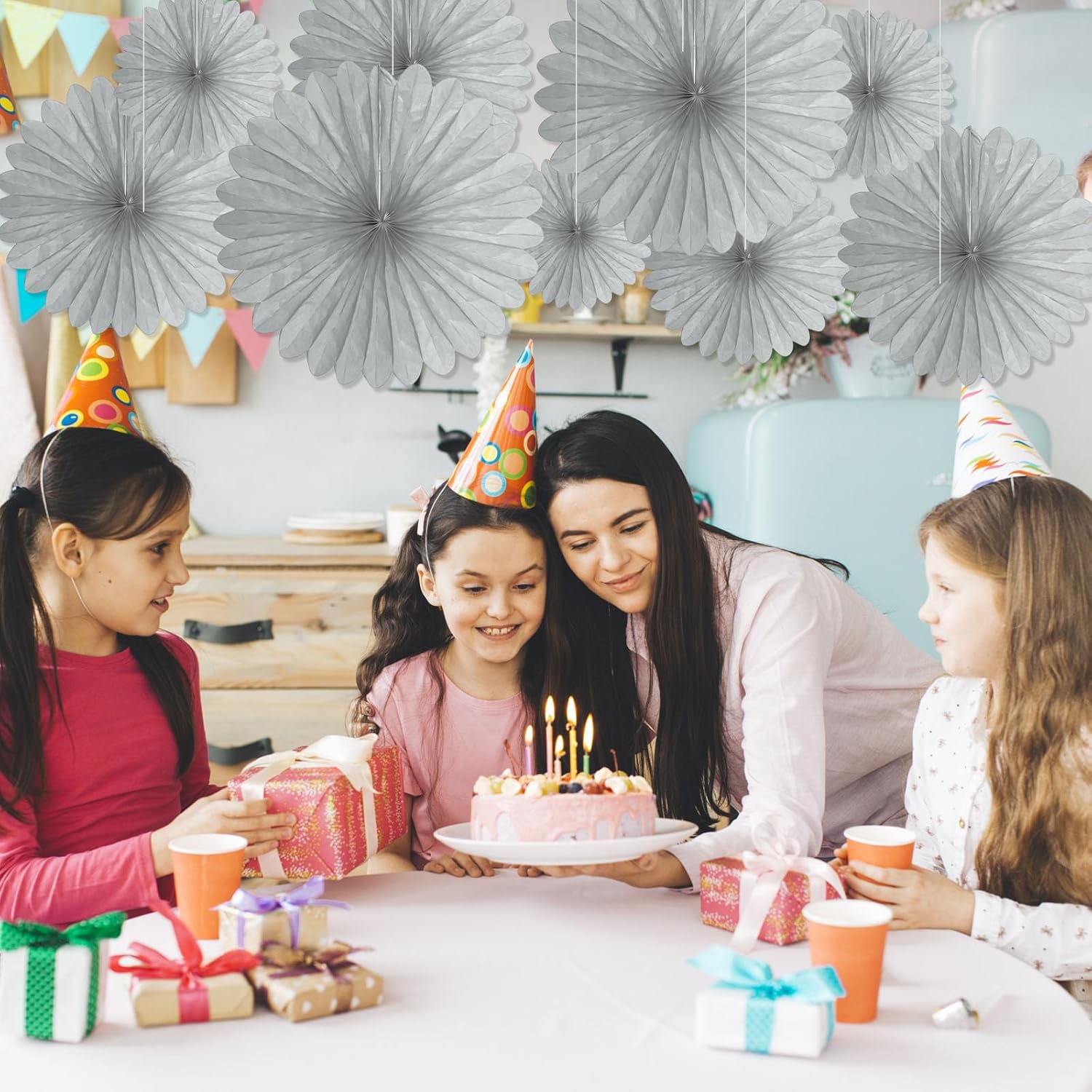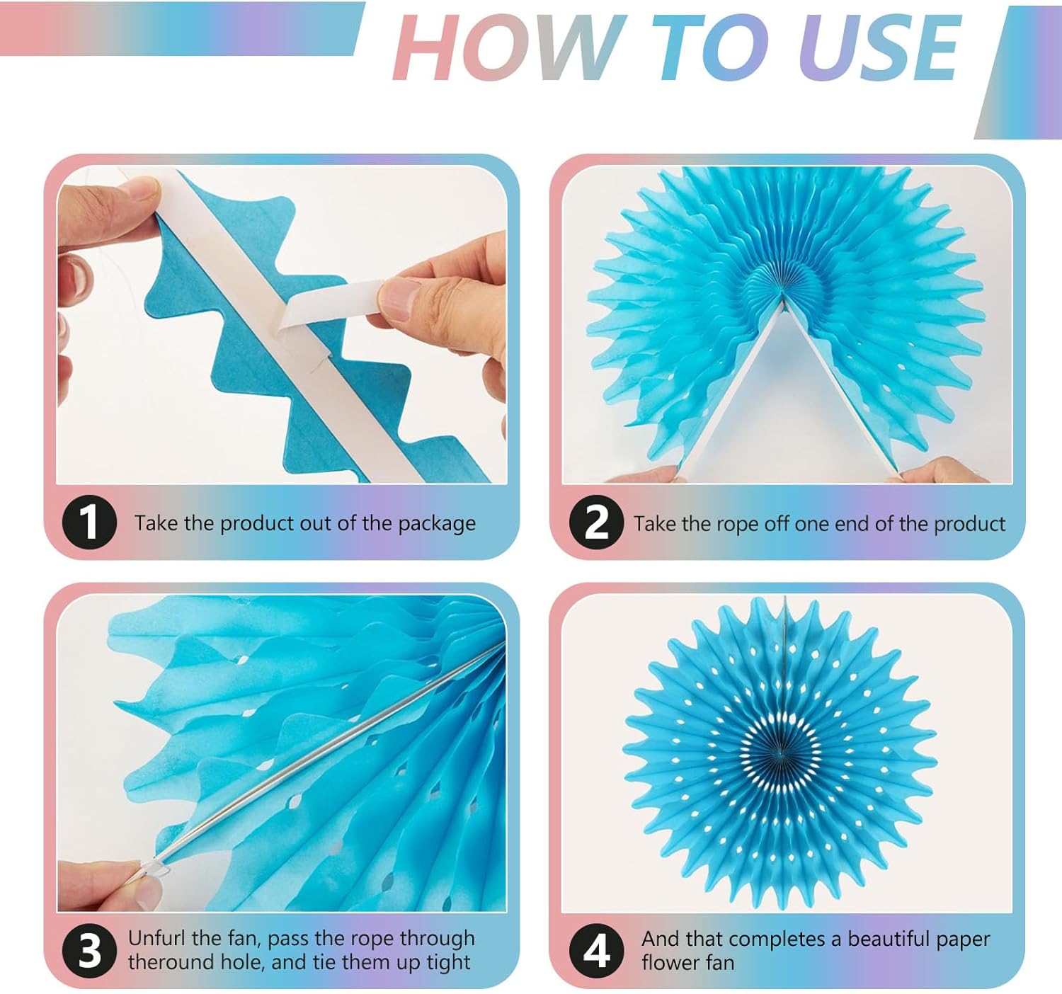 - 【Easy to Assemble】These hanging paper fans have a hanging string attached and a paper clip. Just unfold the paper flower fan and fix it with the rope of the paper flower fan, then you can hang it to your favorite place and decorate your party perfectly in a few minutes.