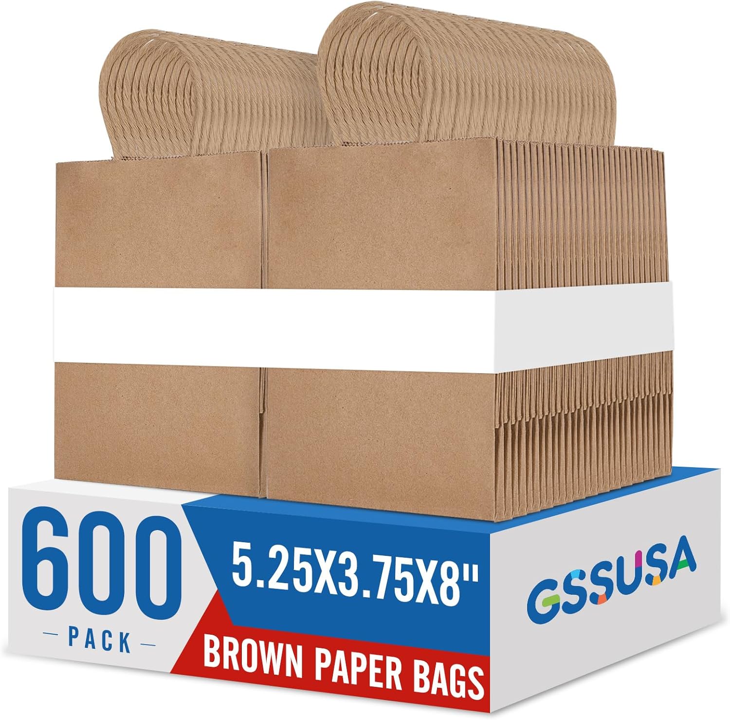 GSSUSA Brown Paper Bags 5.25x3.75x8 600Pcs, Gift Bags with Handles Bulk for Small Business