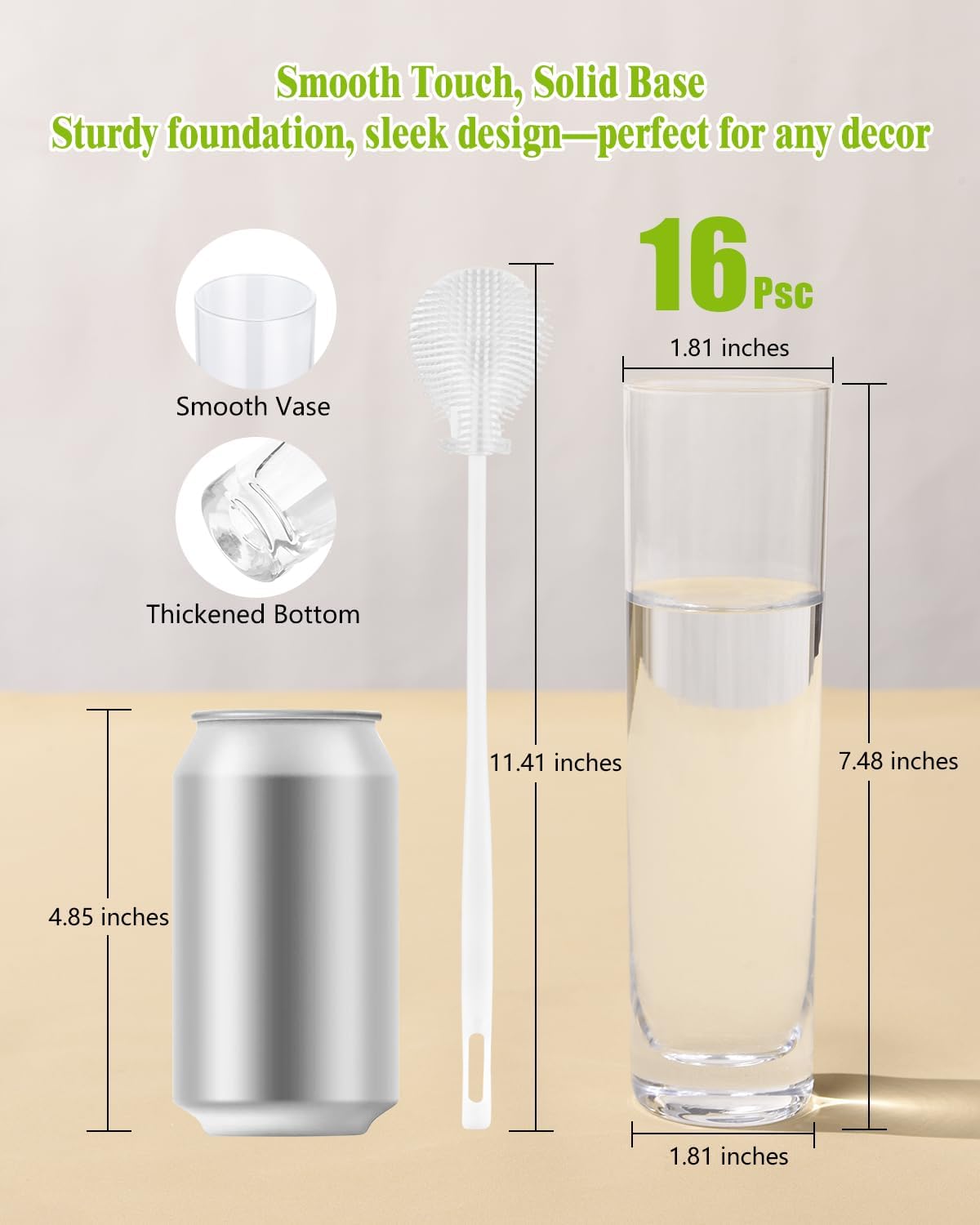 Glass Cylinder Vases for Centerpieces – Set of 16 Handmade Clear Flower Vase 7.48" Tall,Wedding Table Decor for Single Rose Bud Vases,Small Vases Home Decor,Floreros,1 Brush