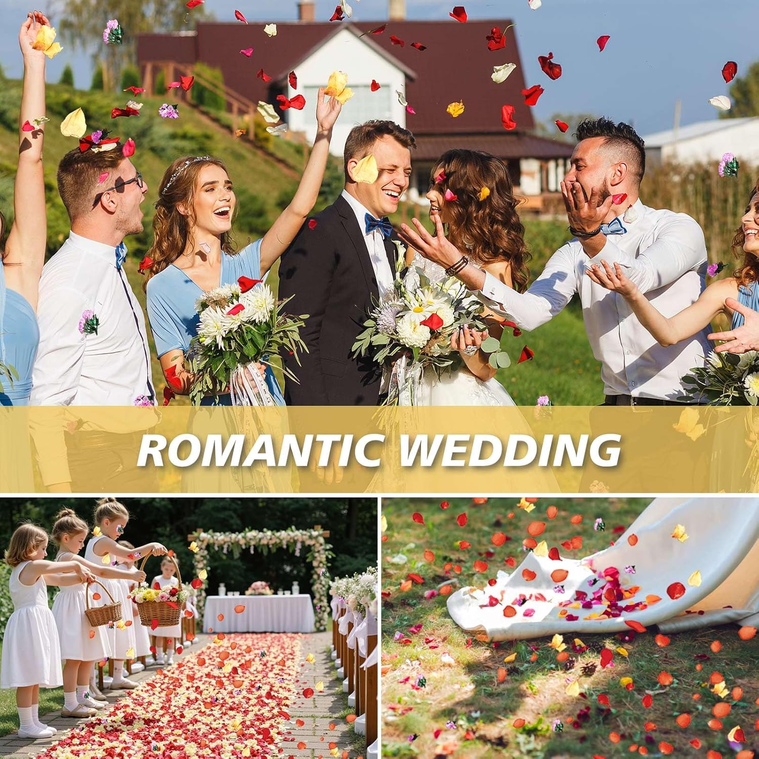 - Wedding Decorations: The language of rose is purity, loyalty and everlasting love, Delicate rose petals are used in wedding party, celebrations, for brides, engagements and proposals. Perfect for sprinkling on wedding tables, wedding bouquets and centerpieces, tossing at wedding, wedding petals for flower girls. It is an economical and simple way