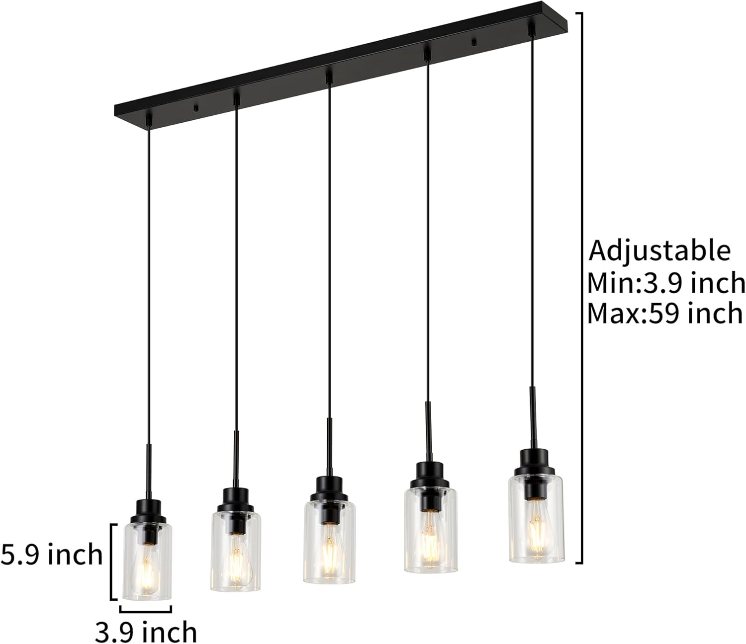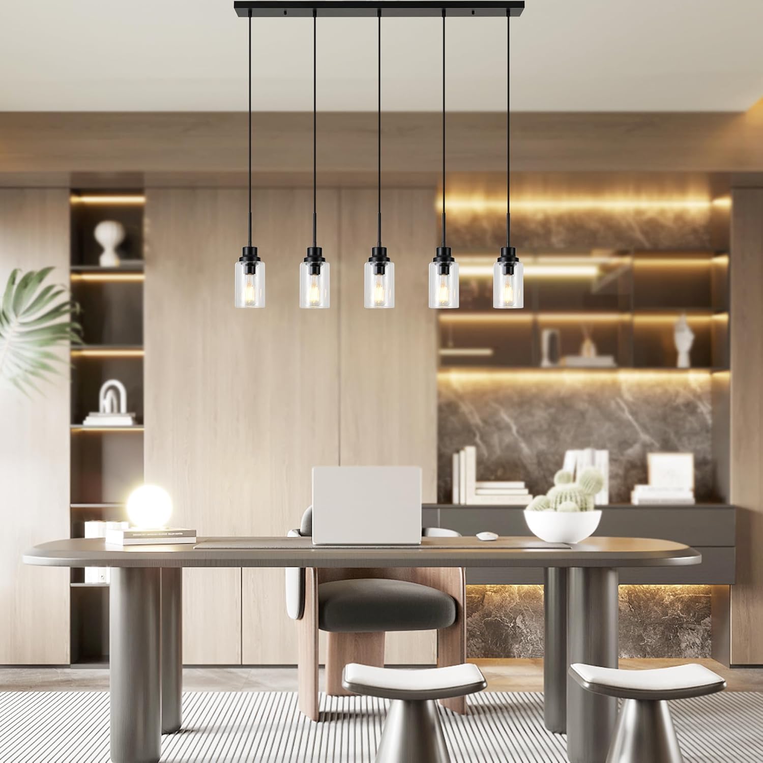 Black Dimmable Pendant Lighting for Kitchen Island, 5-Light Modern Pendant Lights for Kitchen Restaurant Living Room with Clear Glass Shade