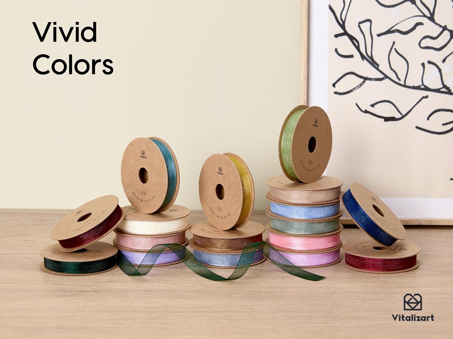 Vitalizart 3/8" x 90 Yards Organza Ribbon Set 9 Rolls x 10 Yd Sheer Ribbon for Gift Wrapping Crafts Christmas Tree Bows Wedding Invitations Wreaths Party Decor Bouquet DIY Projects (Mixed Colors)