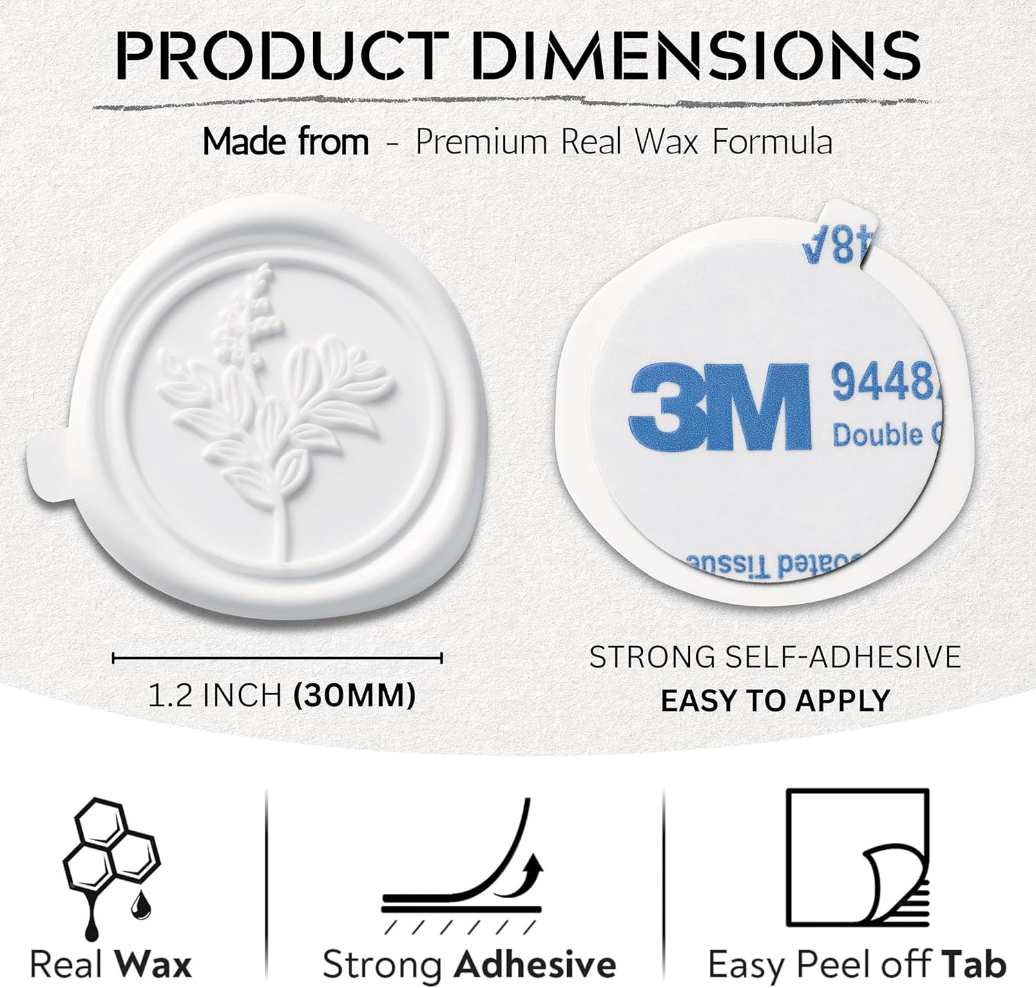 Wax Seal Stickers (60 Pcs, 3 Designs in 1 Pack) Premium Envelope Seal Stickers for Wedding Invitation Envelopes, Adhesive Wax Seals, Perfect for Seating Chart, Gift Wrapping