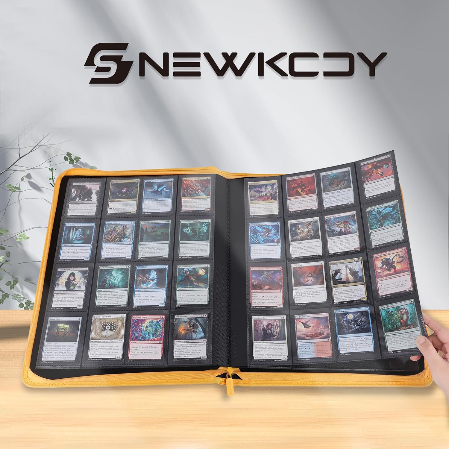Snekdy premium 1024-pocket trading card binder, 16-pocket cards album, waterproof PU-leather Cover album with side loading, holds gaming, baseball, basketball & sports cards (Yellow)
