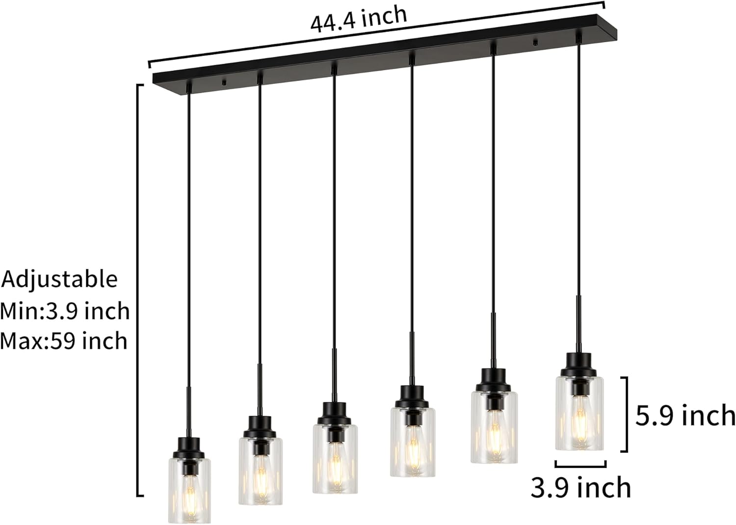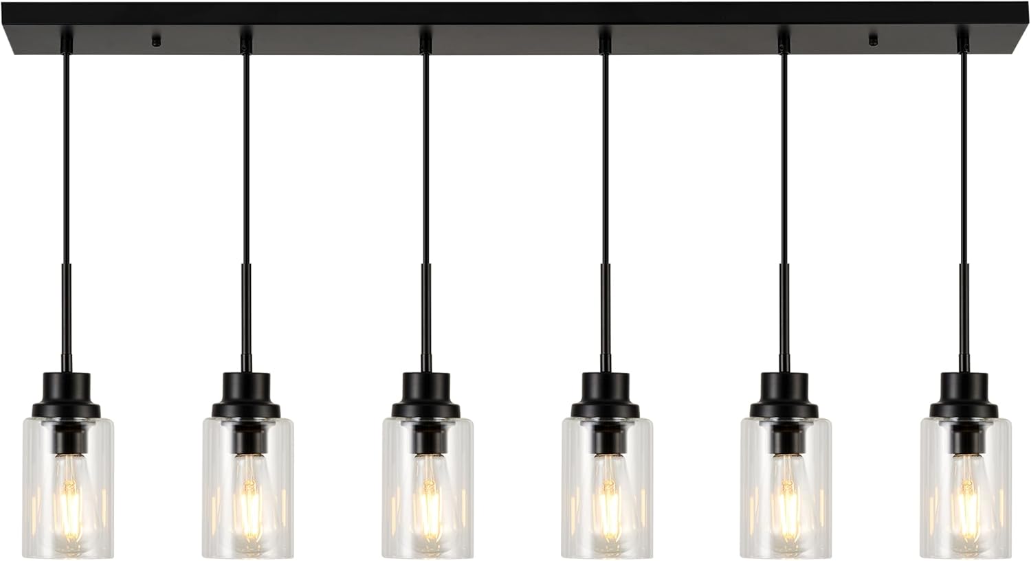 6 Lights Island Lights for Kitchen Modern Industrial Black Linear Chandeliers with Clear Glass Shade for Dining Room Kitchen Long Finish Ceiling Lighting Fixtures