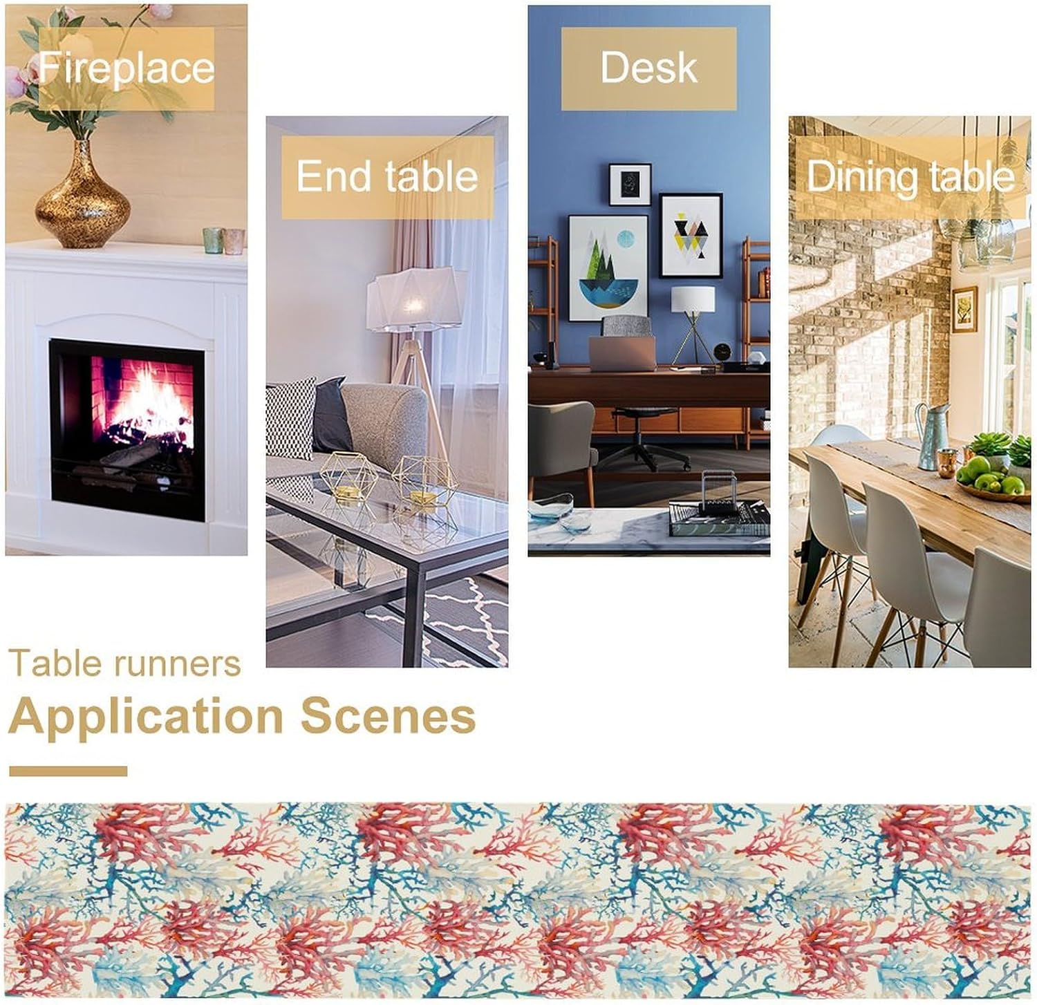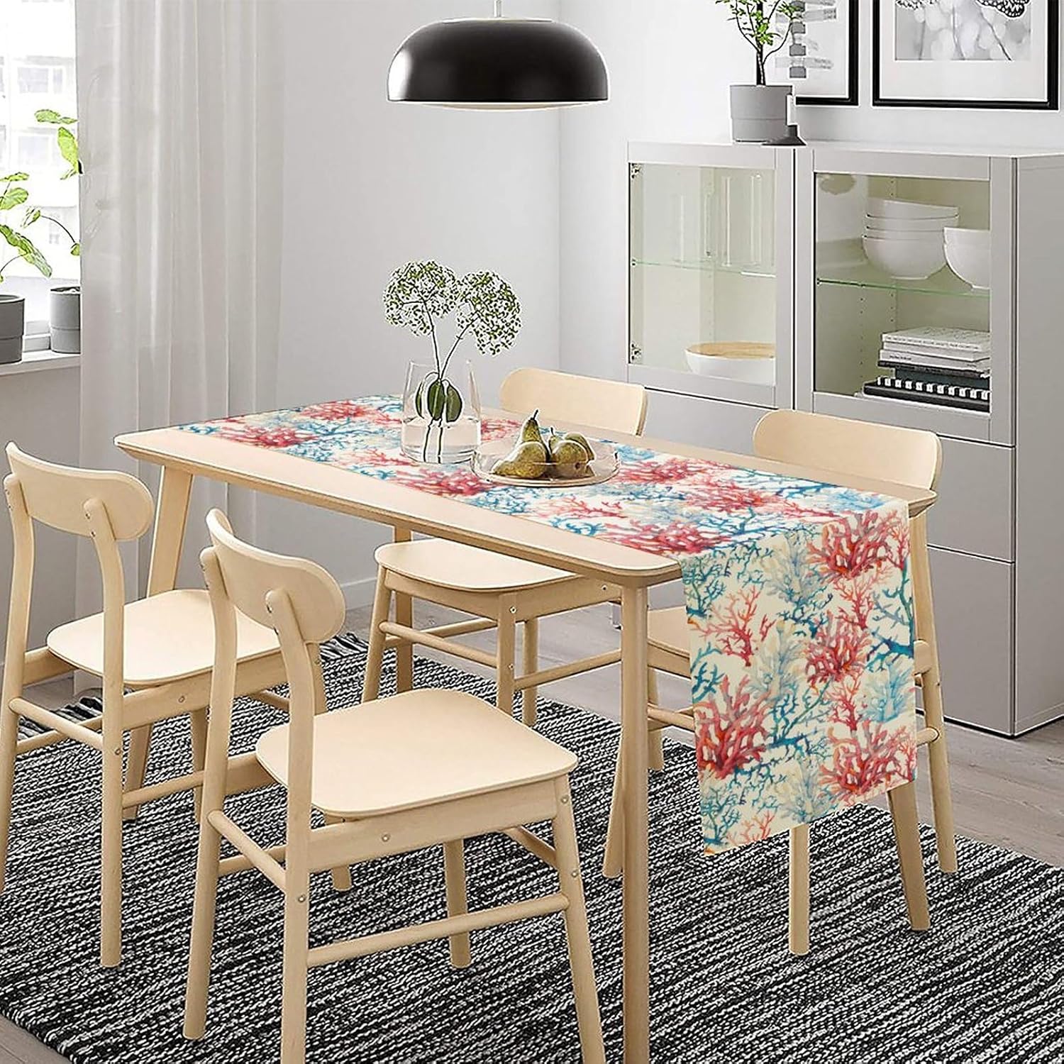 Blue Beach Table Runner, Tropical Ocean Coast Table Runner, Seashell Seasonal Nautical Restaurant Coffee Table Decorations for Home Holiday Party Indoor Outdoor 13x36 Inch