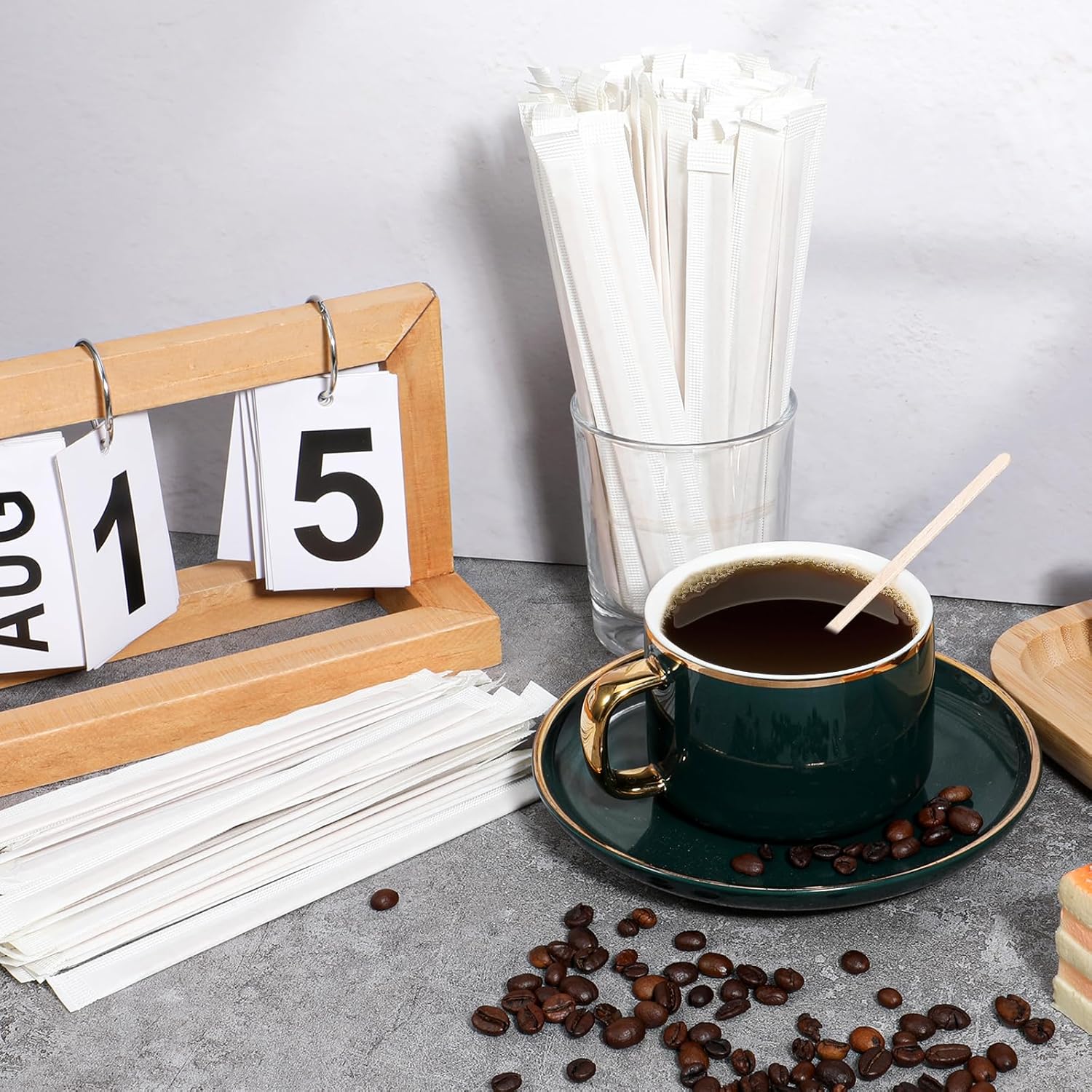 - Hygienic Individual Wrapping: Every wood coffee stir stick comes sealed in clean white paper sleeves, maintaining sanitation in shared environments. The convenient packaging allows for clean dispensing at coffee stations, buffet tables, or for on-the-go use while preventing contamination from dust or handling.