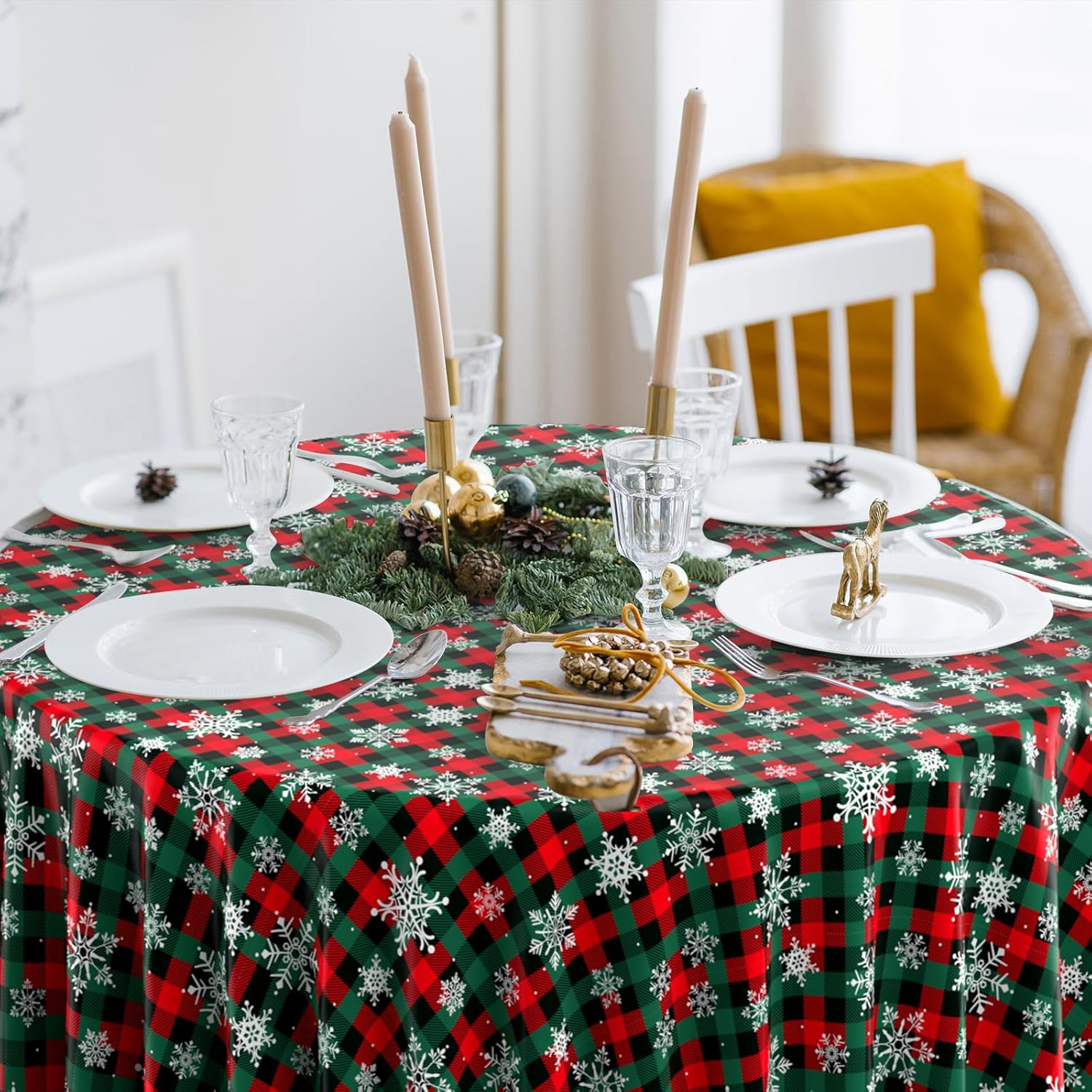 - Easy to clean: the white snowflake Christmas table cover with red and green buffalo plaid background has a smooth surface, you just need to wipe the table cover to clean it, then store it for next time or just toss it away,itβs great value for saving your time for cleaning after parties or decorate during the parties