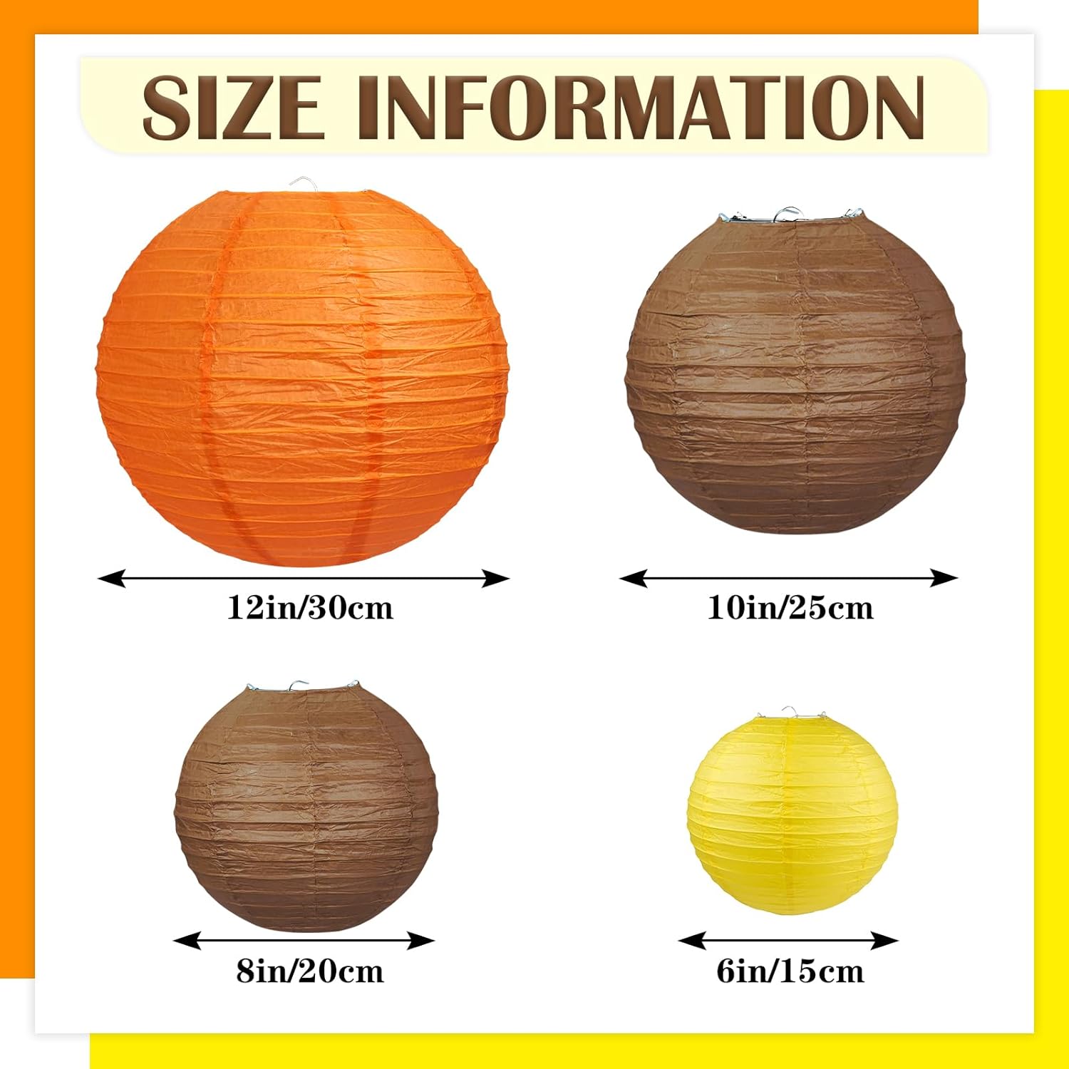12Pcs Fall Paper Lanterns, Various Sizes (6" 8" 10" 12") Hanging Yellow Orange and Brown Paper Lanterns for Baby Shower Bridal Shower Wedding Birthday Thanksgiving Fall Party Decorations