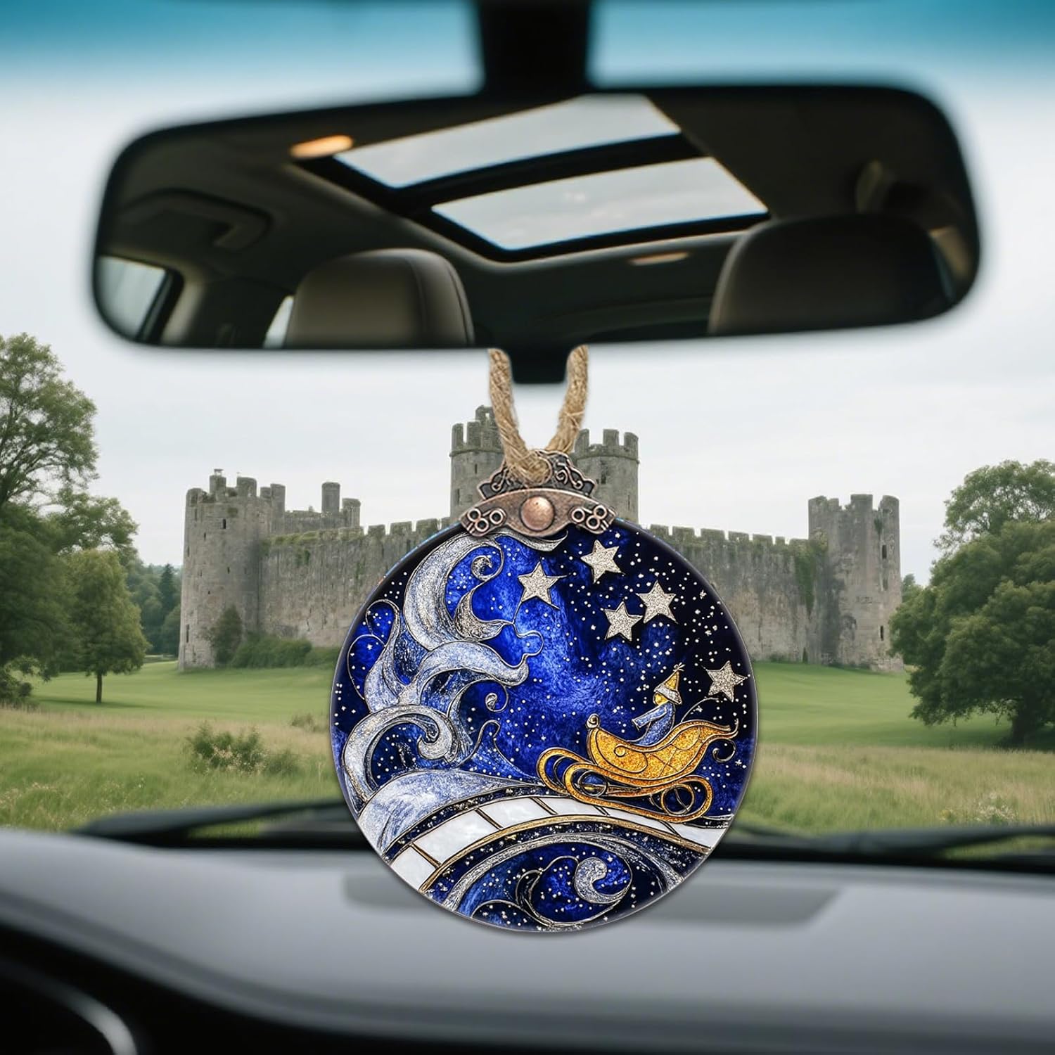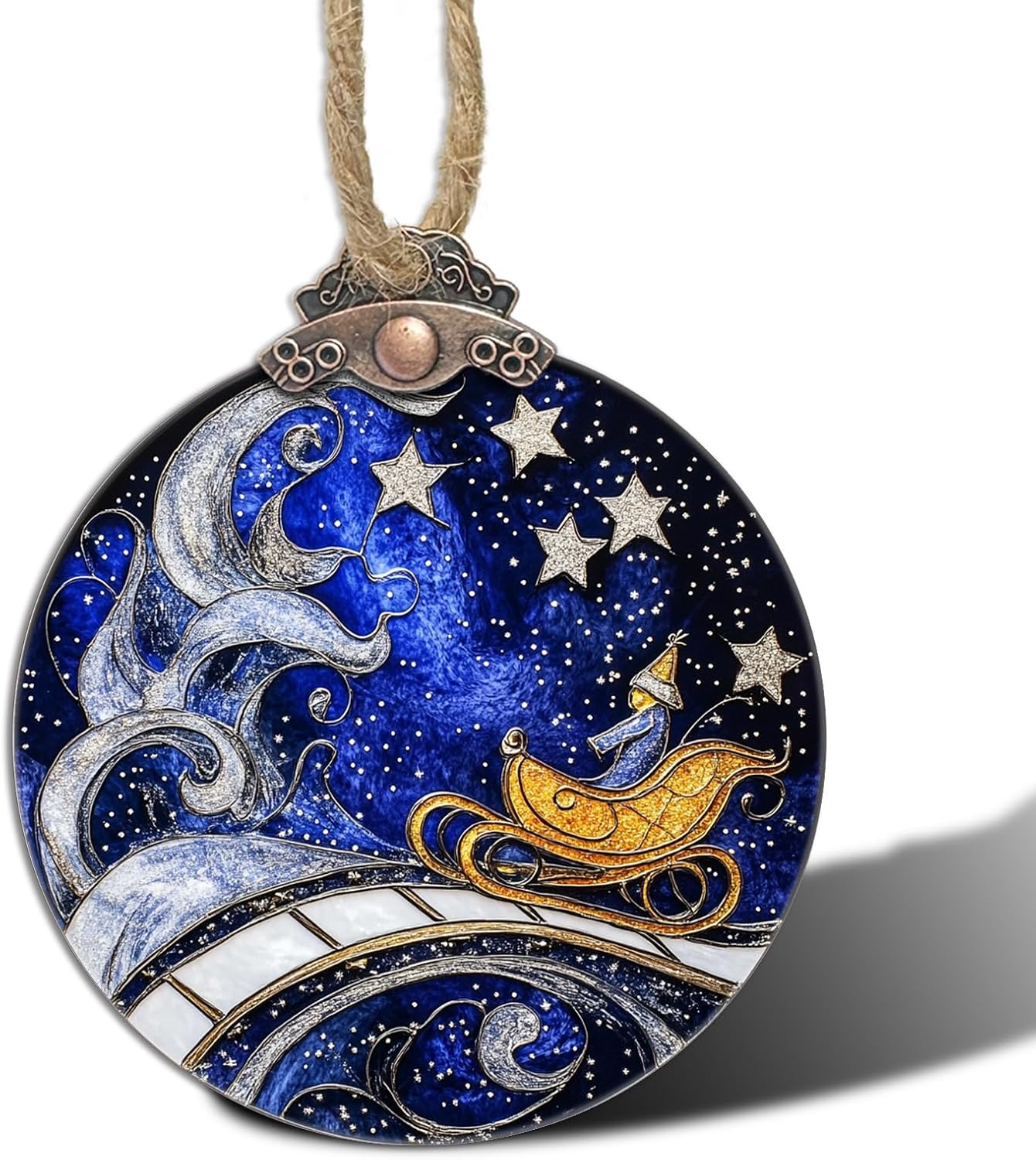 Stained Glass Christmas Decorations, Blue Sky Silver Star Suncatcher for Window Christmas Tree Hanging Ornaments Magic Carpet Sun Catcher Xmas Decor Gifts for Women Men Mom Nana Friend