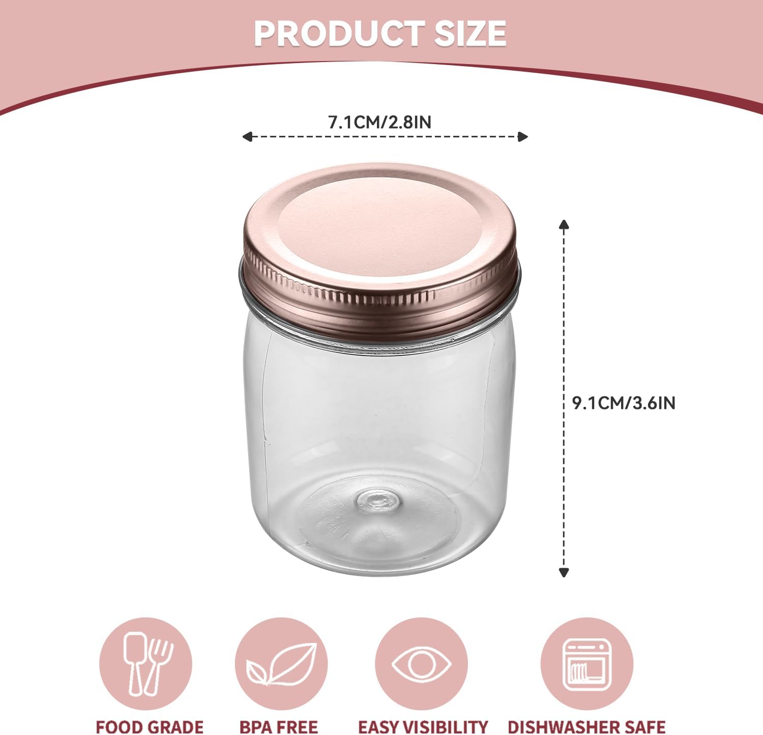 novelinks 8 oz Clear Plastic Jars with Screw-On Lids - BPA-Free Refillable Storage Containers for Slime, Spices, Crafts, Kitchen & Home Organization (48 Pack,Rose Gold)