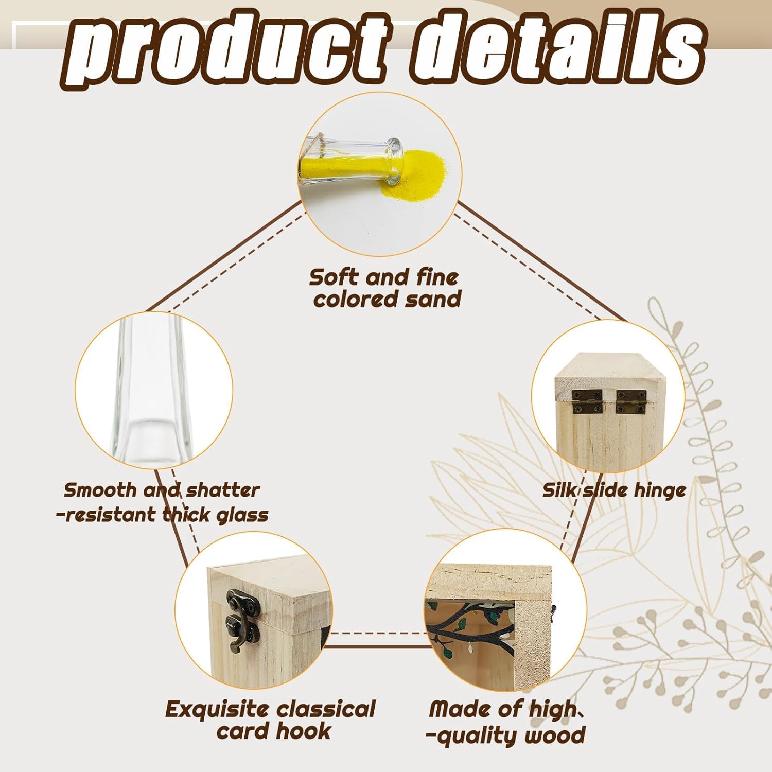 - 【Elegant Decoration】 Our wooden box and sand ceremony vases can be used not only as wedding ceremony items, but also as home decor. The glass vases can be used for floral arrangements or filled with colored sand as a symbol of happiness and love; the wooden box can also be used to store memories about your love, keeping precious moments forever.