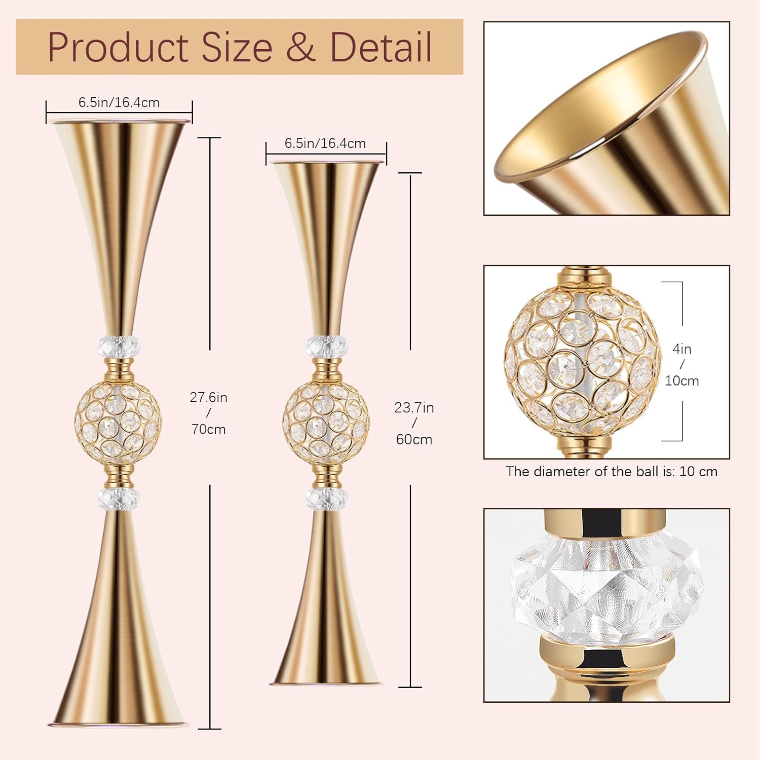 - 【Commercial-Grade Construction】Heavy-Duty Stainless Steel Commercial Wedding Vase with Crystal Centerpiece, The gold flower stand is elegant and luxurious, Match with fresh flowers, artificial flowers bouquets and feathers etc. which makes it an ideal decoration for wedding décor, prom night, official banquets, festivals, birthdays, baby showers, theme parties. daily occasions, such as living room, bedroom, fireplace, office, library or formal dining room, coffee shop, bar, hotel etc.