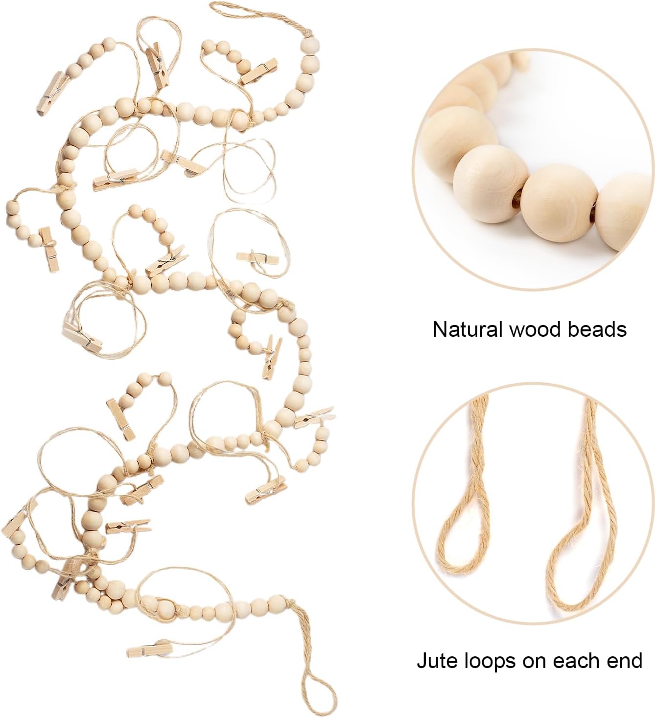 - 【Boho - Chic Aesthetic】 Crafted with Natural Wooden Beads and Minimalist Clips, Hanging Display Brings a Laid-back, Bohemian Vibe to Any Space. Plus, You Will Notice a Soft Woody Scent When You Open the Box. The Neutral Tones and Organic Design Blend Seamlessly with Modern, Rustic, or Cozy Decor Styles - elevating Your Room is Ambiance Effortlessly.