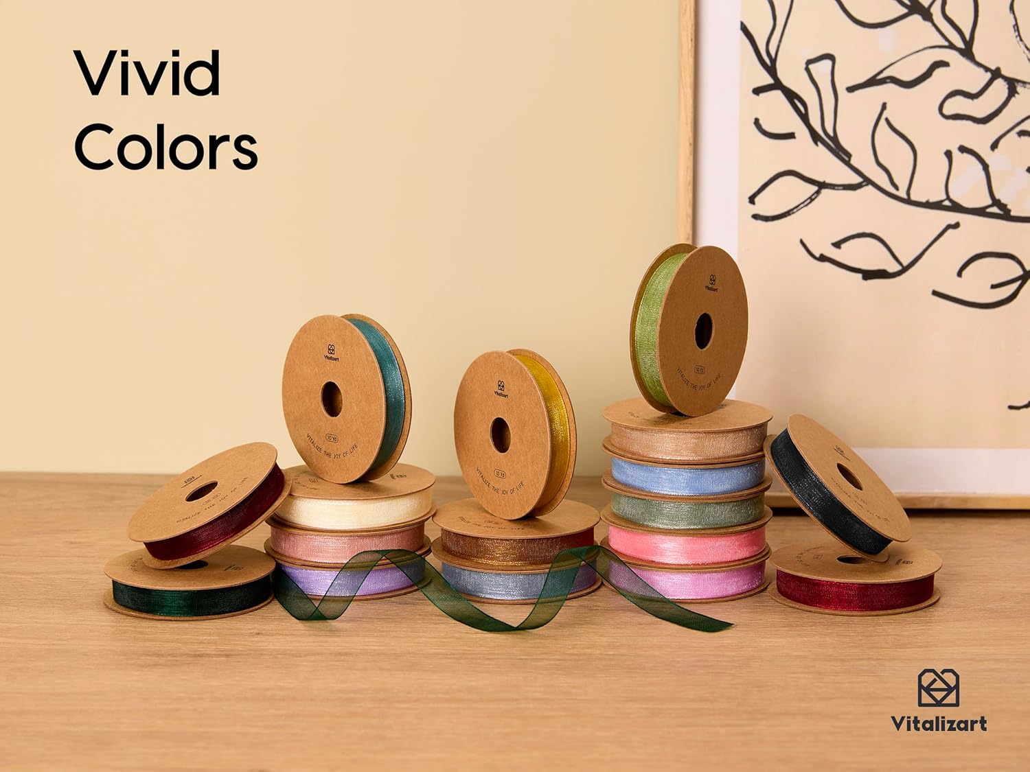 Vitalizart 3/8" x 30Yd Organza Ribbon Black Sheer Ribbons Set 10 Yd x 3 Rolls Handmade Eco-Friendly for Gift Wrapping Christmas Tree Crafts Bows Wedding Invitations Wreaths Wrap