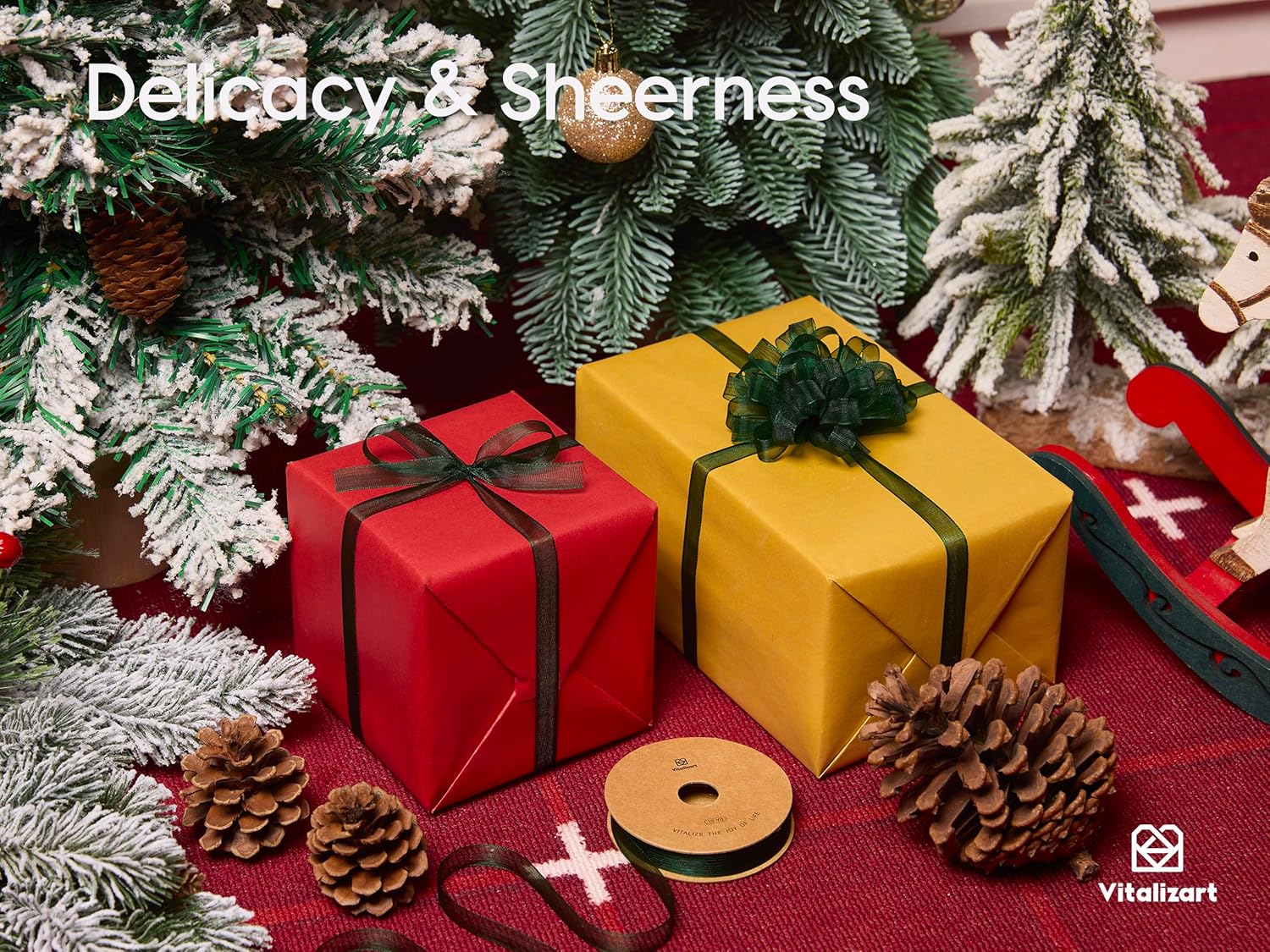Vitalizart 3/8" x 30Yd Organza Ribbon Christmas Green Sheer Ribbons Set 10 Yd x 3 Rolls Handmade Eco-Friendly for Gift Wrapping Christmas Tree Crafts Bows Wedding Invitations Wreaths Wrap