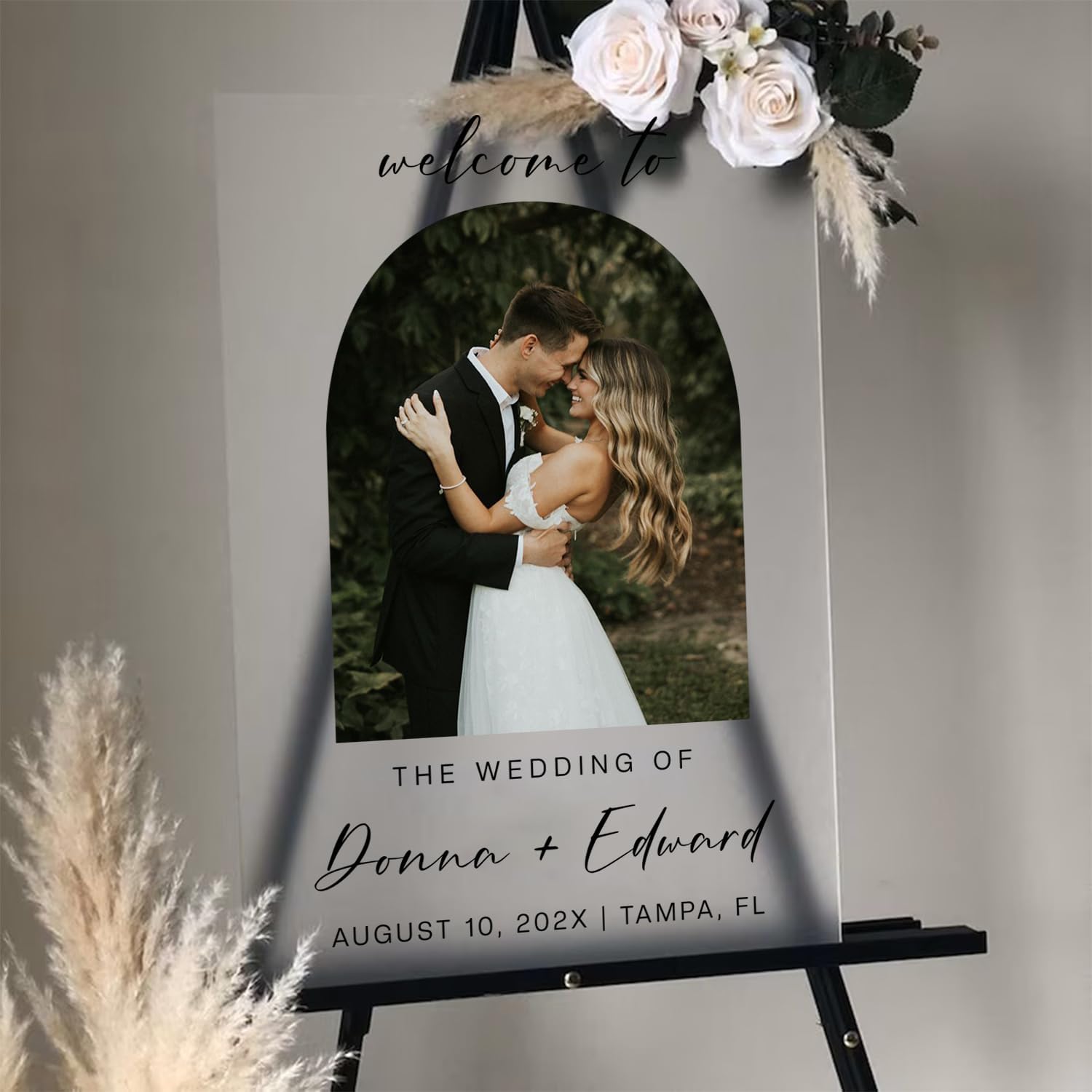 Personalized Wedding Photo Acrylic Welcome Sign – Custom Picture Board with Bride & Groom Names, Elegant Acrylic Wedding Reception Entrance or Ceremony Decoration, Indoor & Outdoor Keepsake Gift #4